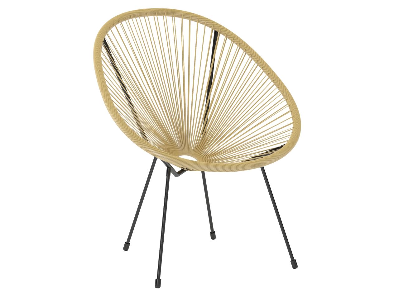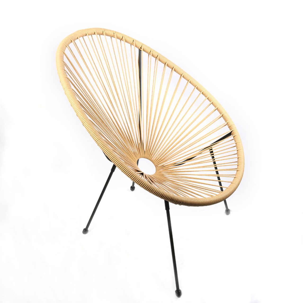 Modern chair with a round seat made of braided ropes, set on a slender metal base. Lightweight, stable and comfortable, ideal for cafes, restaurants, terraces and modern interiors.