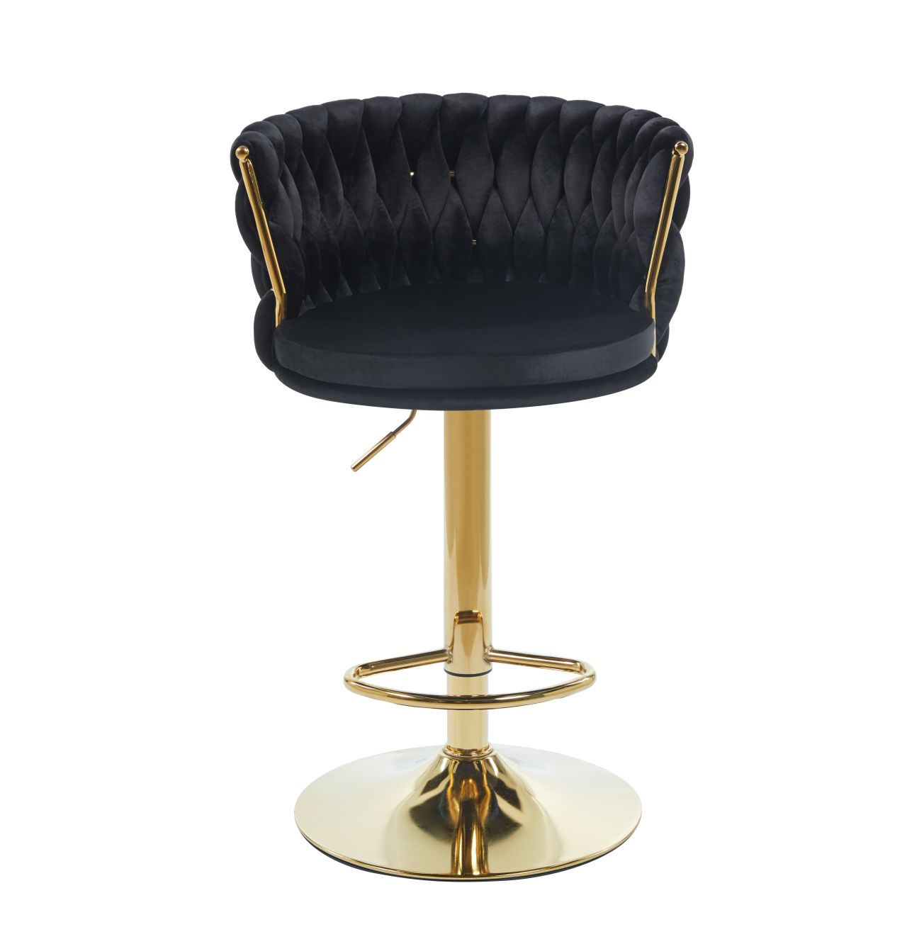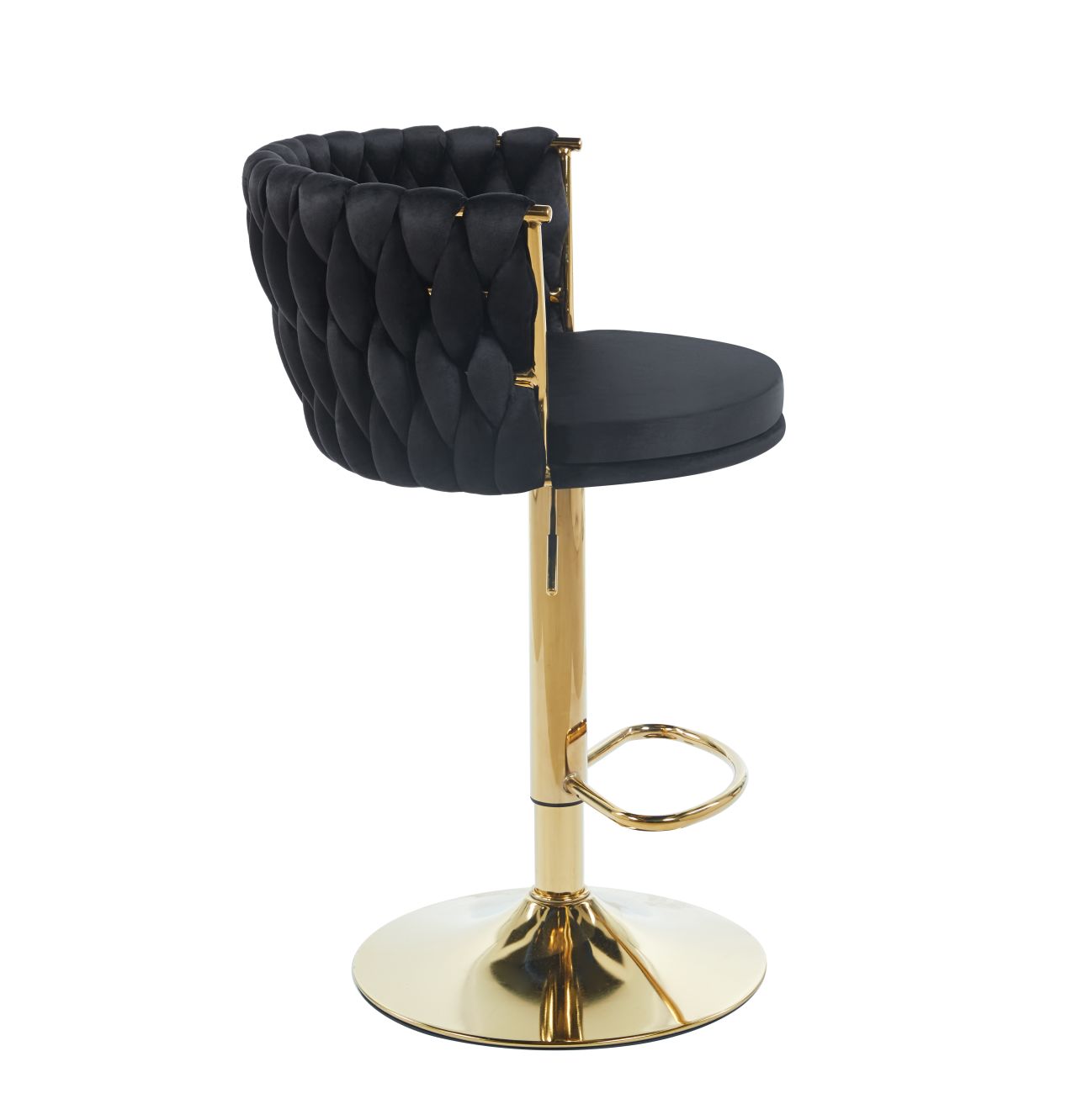 Nowoczesne krzesło barowe z efektownym, falowanym pikowaniem i miękkim, otulającym oparciem, które zapewnia wysoki komfort siedzenia. Złota, regulowana podstawa podkreśla elegancki charakter i idealnie pasuje do luksusowych wnętrz restauracyjnych i hotelowych.