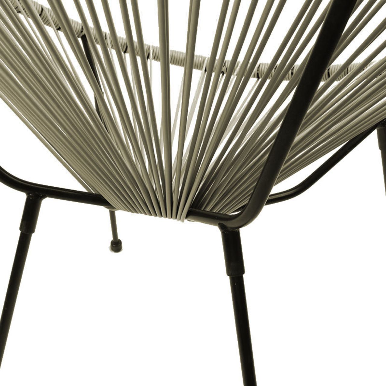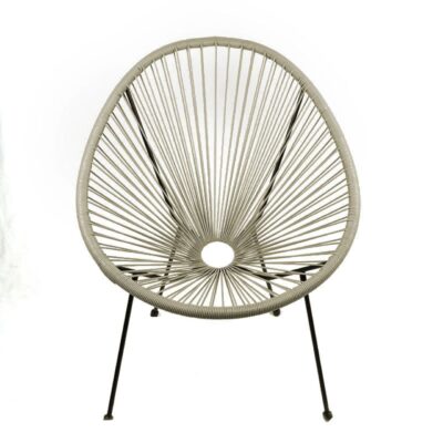 Nowoczesne krzesło z okrągłym siedziskiem wykonanym z plecionych linek, osadzonym na smukłej metalowej podstawie. Lekkie, stabilne i wygodne, idealne do kawiarni, restauracji, tarasu oraz nowoczesnych wnętrz.