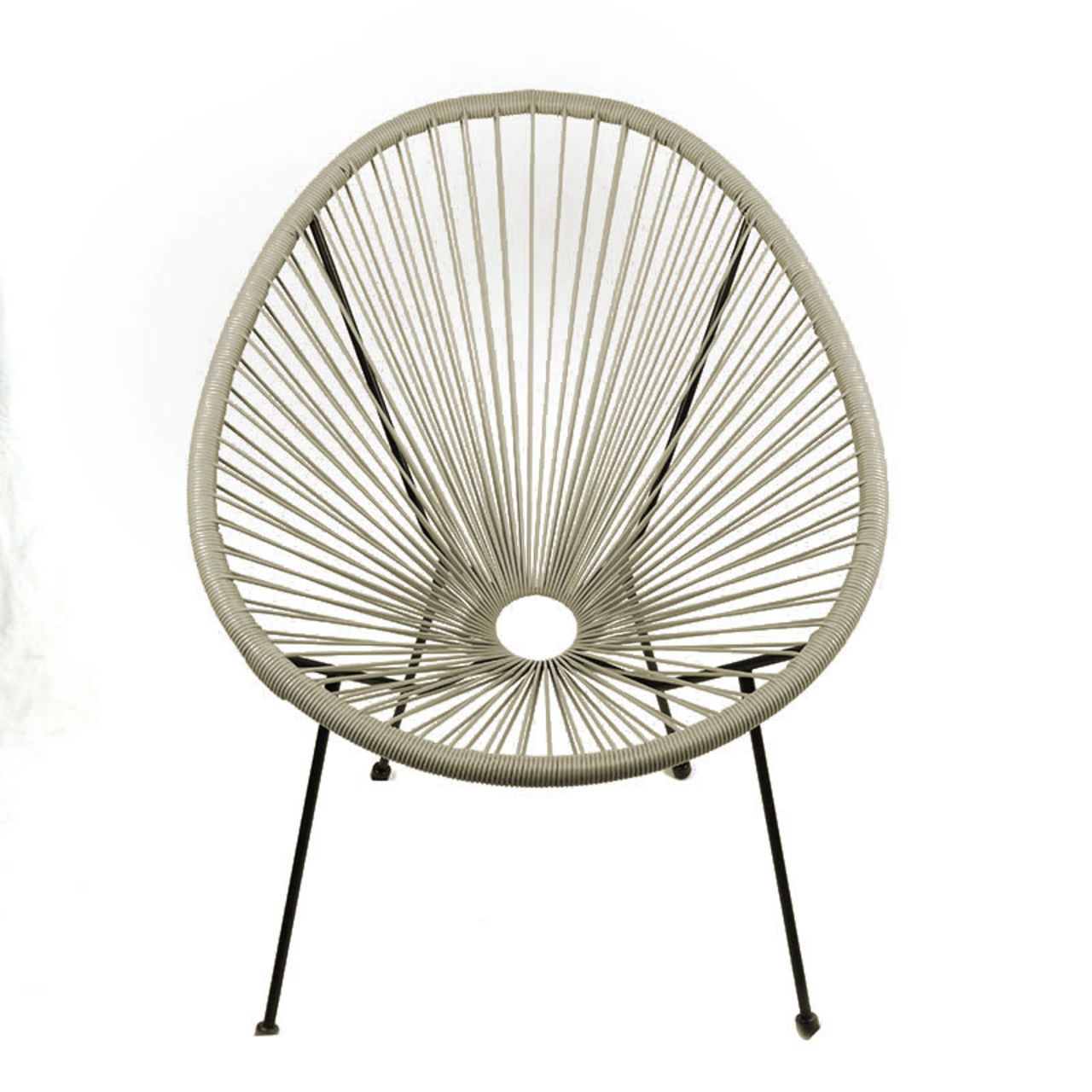 Nowoczesne krzesło z okrągłym siedziskiem wykonanym z plecionych linek, osadzonym...